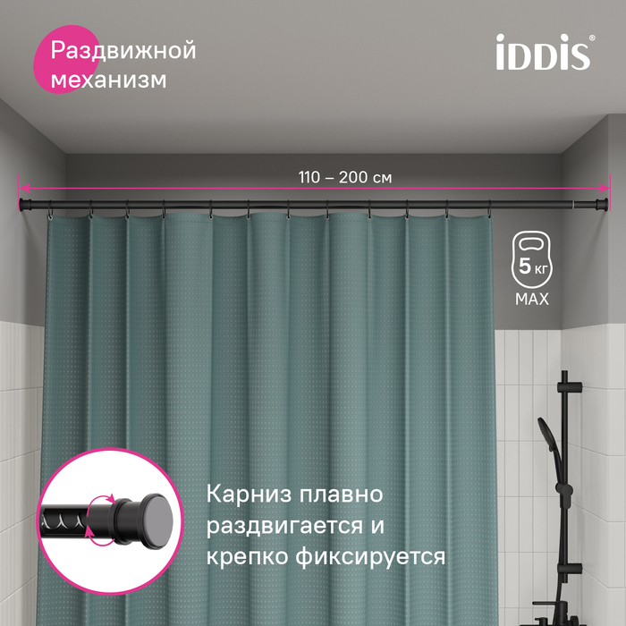 Карниз для ванной комнаты, 110-200 см, черный матовый, Elegante, IDDIS, (RSB0120i14)
