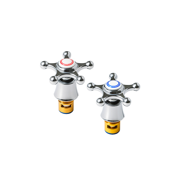 Комплект для смесителя кран-букса с маховиком 1/2. В наборе ремкомплект для смесителя пара - 2 кран буксы и 2 металлических маховика с декоративными колпачками – юбками и указателями холодной и горячей воды на маховиках. Кран-букса керамическая для смесителя с маховиком 1/2 дюйма для всех типов двуручных смесителей.