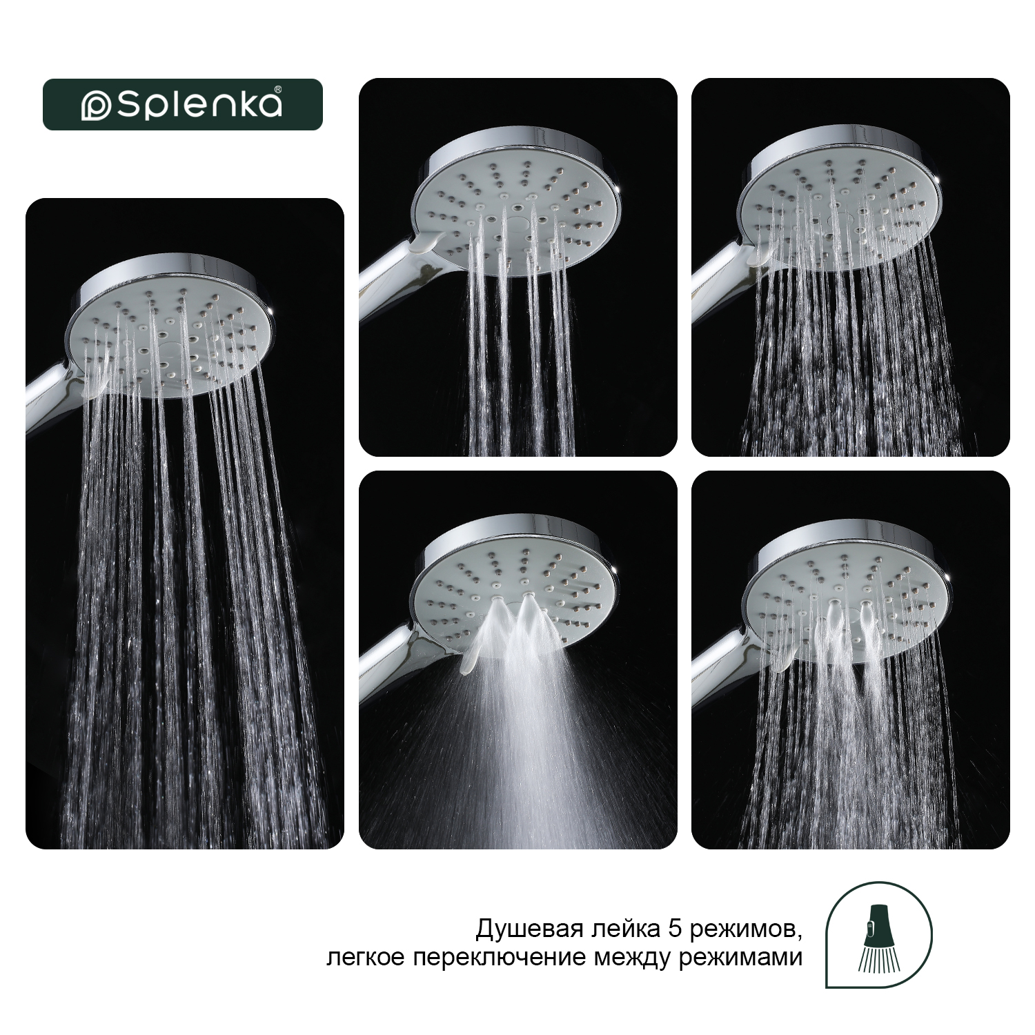 нтерьер создают детали. Именно по этой причине важно выбрать качественную и современную лейку для душевой кабины по разумной цене. Душевая лейка SPLENKA имеет хорошо выполненный современный дизайн, который сочетает в себе техническое совершенство, современные модные тенденции и грациозную классику. Лейка для душа полностью адаптирована для эксплуатации в условиях повышенной влажности окружающей среды, не боится интенсивных перепадов температур. 5 режимов работы душевой лейки, исполнение в цвете хром. Сантехника с брендом высокого класса отличается модным и стильным дизайном, гарантированно высоким качеством и при этом - разумной ценой.