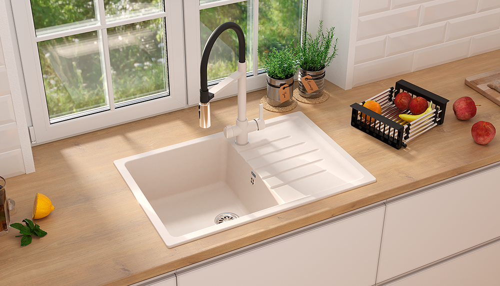 ULGRAN U-400 - односекционная классическая реверсивная кухонная мойка, с вместительной чашей. Данная мойка устанавливается в шкаф шириной от 60 см и является оборачиваемой. В комплектацию входит сливная арматура с гофротрубой, технический паспорт и гарантийный талон. Заводская гарантия составляет 4 года, а срок службы данной мойки, при соблюдении основных правил ухода за ней, составляет более 10 лет. Мойки ULGRAN изготавливаются на современном автоматизированном оборудовании по инжекционной технологии (литье под давлением) и имеют сравнительно малый вес при высокой прочности, что обеспечивает высокий уровень качества и комфортности. Благодаря сочетанию полиэфирных смол и натуральных мраморных наполнителей полученный композитный материал в 8 раз прочнее натурального мрамора, абсолютно экологичен и безопасен для здоровья человека. Декоративно-защитное покрытие - гелькоут не имеет микропор и не впитывает никакие бытовые загрязнения, устойчиво к ультрафиолету, имеет антибактериальные свойства и надежно защищает от механических повреждений. Мойки ULGRAN устойчивы к термическим воздействиям и кипятку, имеют отличное шумопоглощение при падении струи воды и увеличенное сопротивление внешнему износу (царапинам, ударам). Мойки просты в уходе и без труда чистятся неабразивными средствами, очень долго сохраняя свой цвет и первозданный внешний вид.