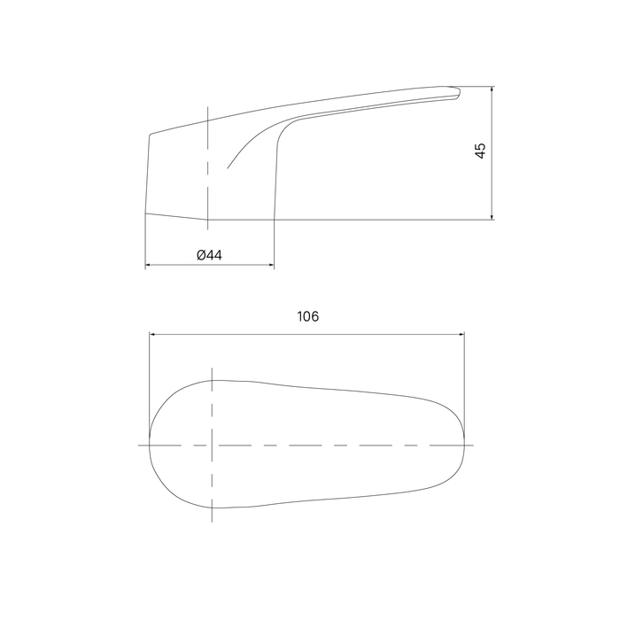 Универсальная сменная ручка для смесителя округлой прямоугольной формы. Подходит для картриджа диаметром 35 мм.