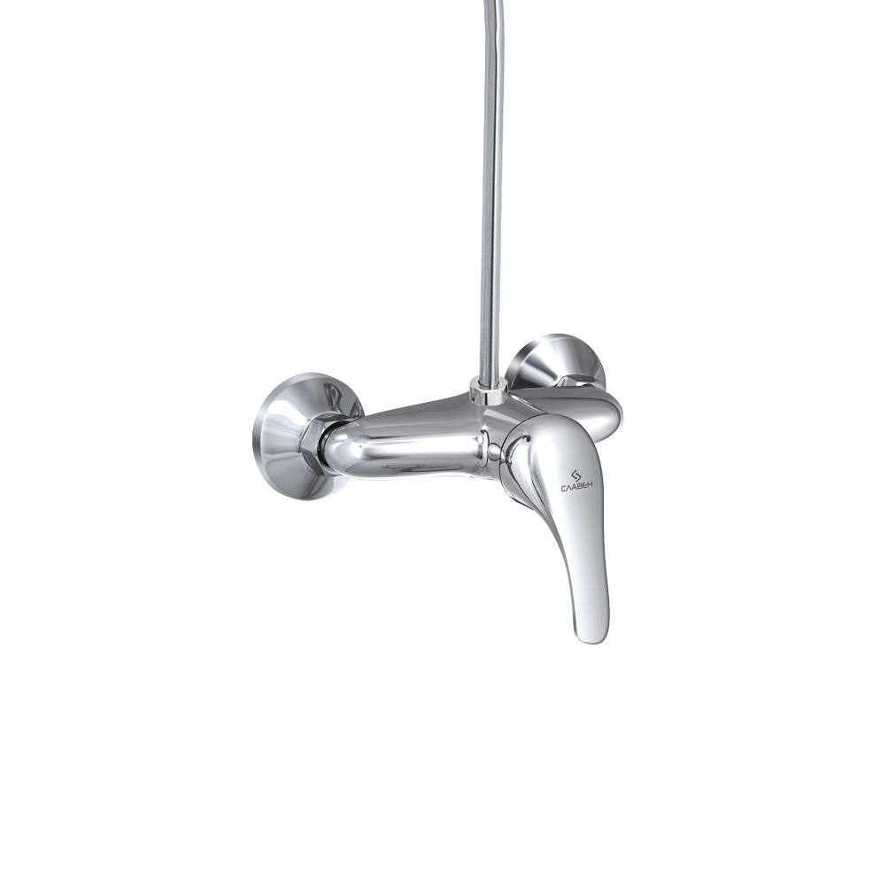 Современный однорычажный смеситель для душа со стационарной душевой сеткой от компании «СЛАВЕН» c собственной сборочной линией полного цикла в Подмосковье.