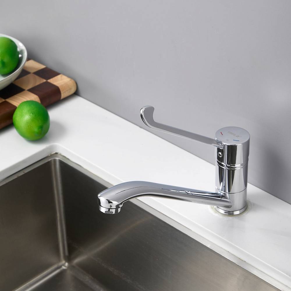 Надёжный механизм с 35-миллиметровым керамическим картриджем гарантирует плавное и точное управление температурой и напором воды, а эргономичный хирургический рычаг делает процесс регулировки максимально удобным. Монтаж смесителя осуществляется быстро и просто благодаря надежной гайке, а гибкая подводка G 1/2" длиной 45 см, входящая в комплект, обеспечивает удобное подключение к системе водоснабжения.