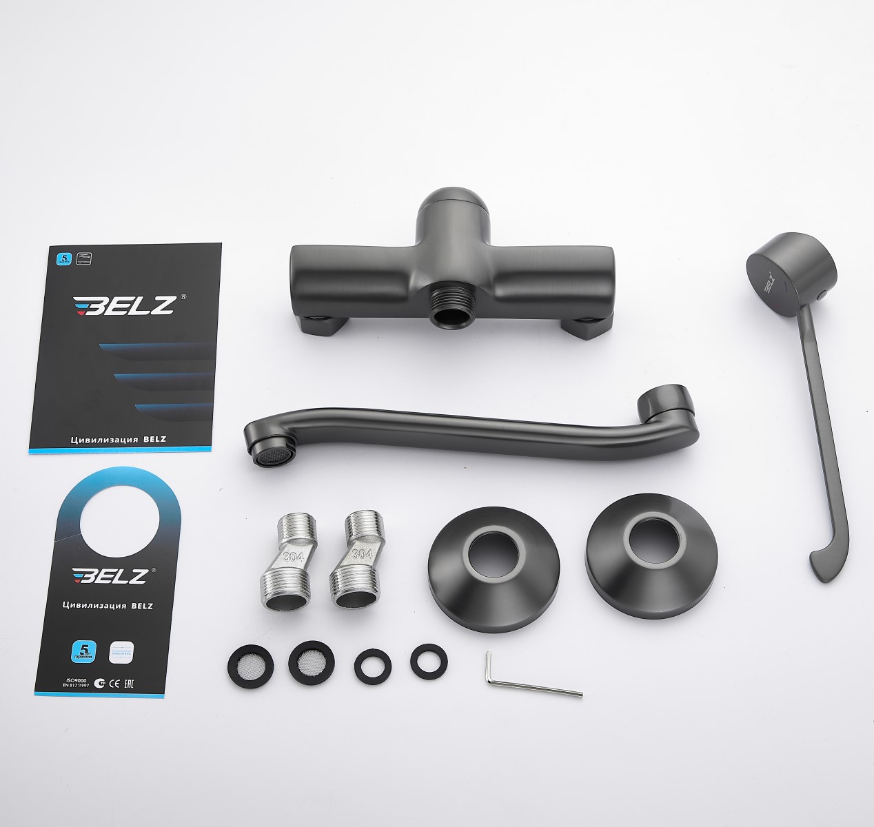 Настенный смеситель BELZ B79019-3 в цвете "оружейная сталь" представляет собой воплощение комфорта и функциональности в каждой детали. Изготовленный из прочной латуни, этот изысканный прибор не только гарантирует долговечность эксплуатации, но и станет настоящим украшением вашего кухонного пространства. Инновационная конструкция с поворотным изливом и встроенным аэратором обеспечивает максимальный комфорт при использовании: вы сможете легко направлять поток воды в любую точку мойки, а аэратор создаст мягкую, экономичную струю. Управление осуществляется удобным хирургическим рычагом, который позволяет точно регулировать температуру и напор воды. Универсальность монтажа — одно из главных преимуществ модели. Межосевое расстояние 150 мм с возможностью регулировки ±15 мм благодаря специальным эксцентрикам в комплекте позволяет установить смеситель практически на любой поверхности. Это делает установку максимально гибкой и удобной даже в условиях нестандартной планировки. Пятилетняя гарантия от производителя подтверждает высочайшее качество и надежность смесителя BELZ. Выбирая этот смеситель, вы получаете не просто прибор для подачи воды, а надежного помощника, который будет радовать вас безупречной работой и элегантным внешним видом на протяжении многих лет. Позвольте себе насладиться комфортом современной кухни с BELZ!