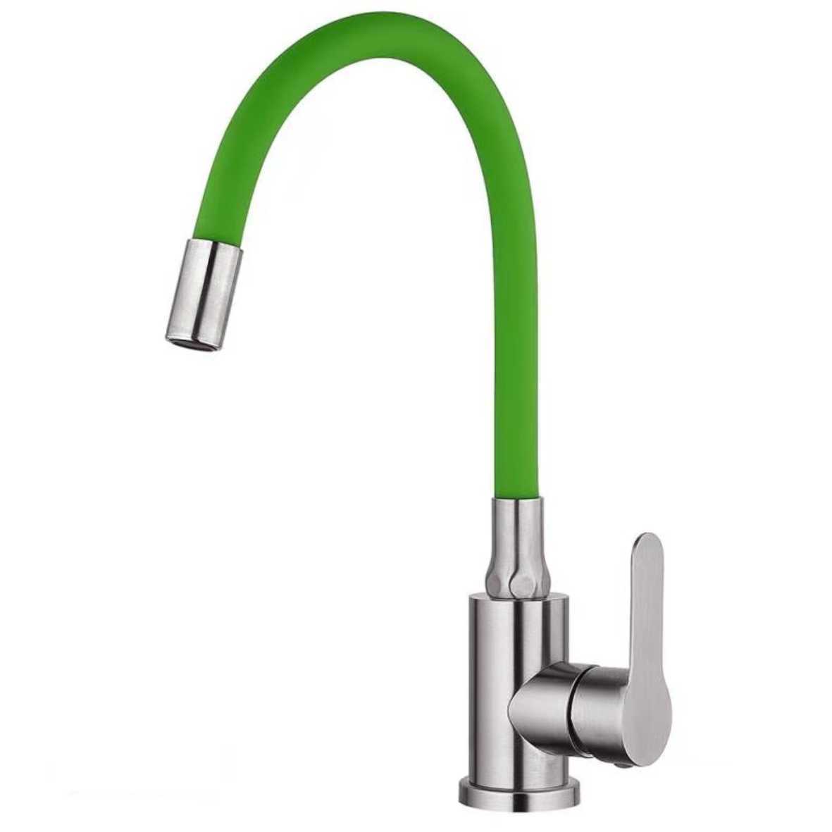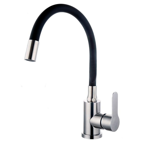 Смеситель для кухни FASHUN (A54101-7) сатин/чёрный, H=330 мм, сталь SUS304, картридж D=35 мм, силиконовый гибкий излив H=175 мм, гибкая подводка: 450 мм в комплекте, крепёж: гайка