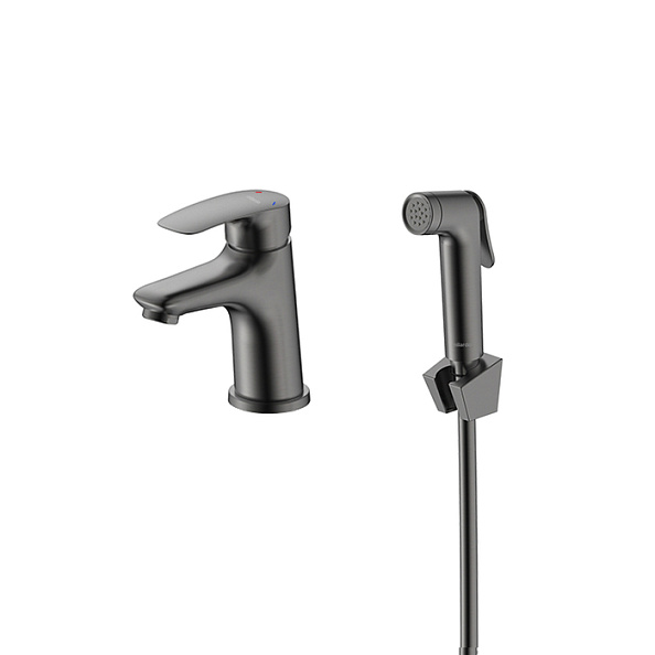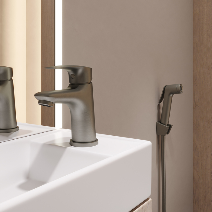 Смеситель для умывальника с гигиеническим душем Milardo Rora графит (RORGM01M08)