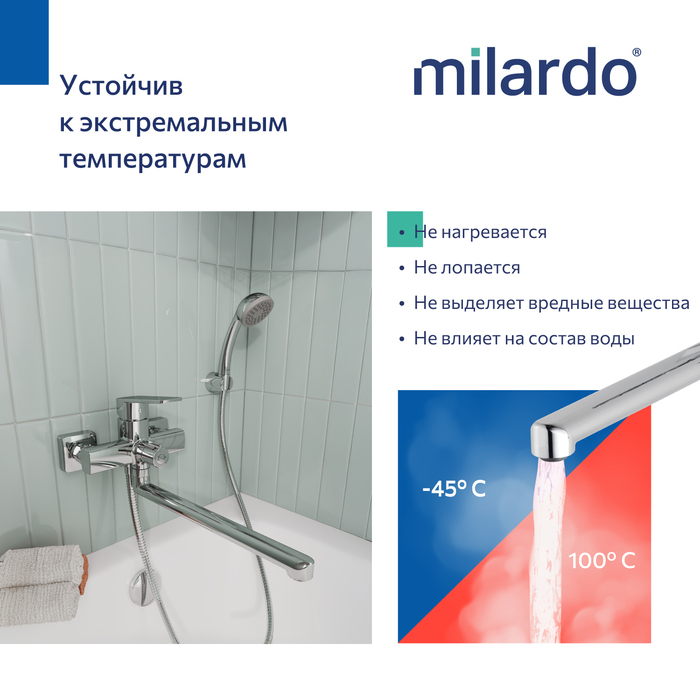 Высокая ударопрочность сохраняется даже при экстремально низких температурах, что помогает подготовиться к дачному сезону в любых условиях или избежать протечек при отключении горячего водоснабжения в квартире.