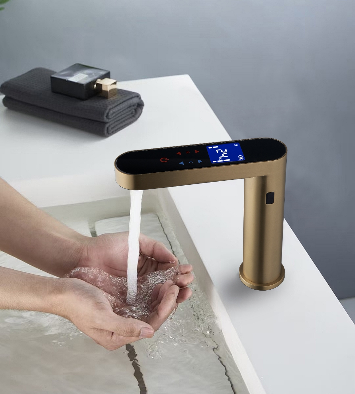 смеситель электронный с сенсорным управлением и ЖК дисплеем, H=174 мм