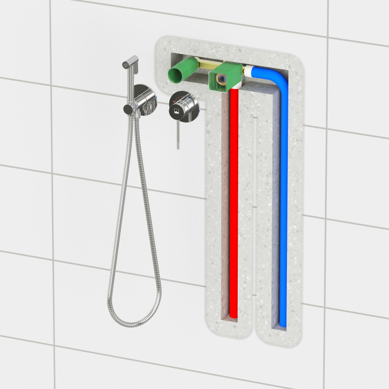 Встраиваемый смеситель с гигиеническим душем Timo Saona 2339 предназначен для монтажа в твердой или полой стене. Термокартридж с защитой от ожогов ограничивает максимальную температуру воды 45 С° повышая комфортность и безопасность использования. Основной задачей данной модели является: экономия места (установка чаши для биде занимает достаточно много места и к тому же затратнее). Все коммуникации, крепления и механизмы спрятаны в стену и закрыты декоративными накладками, снаружи находится только рычаг управления смесителем и держатель гигиенической лейки с подключеним шланга, такая модель отлично сочетается с инсталляцией для унитаза. Длины шланга 1,2 метра хватает для решения гигиенических задач. Можно также использовать например, для мытья собаки после прогулки или наполнения ведра воды и т.д. Сложностей монтажа не возникает при установке смесителя опытным сантехником. Внимательно изучите инструкцию по монтажу и эксплуатации.