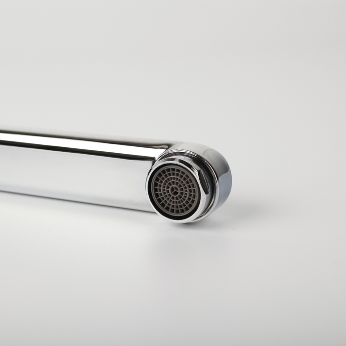 • Съемный пластиковый аэратор M24 гарантирует ровный и мягкий поток воды без брызг. Встроенный в аэратор ограничитель потока сокращает расход воды без ущерба комфорту. Расходы на коммунальные платежи снижаются.