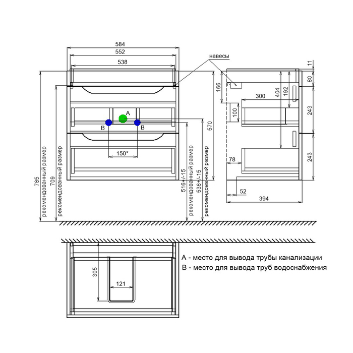 Пластиковая защита сифона внутри ящиков увеличивает долговечность и влагостойкость тумбы.