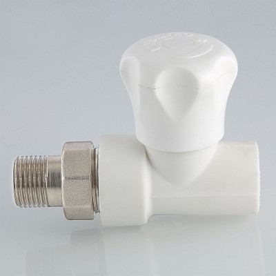 (VTp.717.V) Клапан с полипропиленовым корпусом, прямой. Предназначен для ручной регулировки количества поступающего в отопительный прибор теплоносителя. Клапан позволяет полностью перекрывать поток. Подключение клапана к отопительному прибору производится с помощью закладной детали и полусгона, выполненных из латуни с никелевым покрытием. Монтаж полипропиленовой трубы производится раструбной сваркой. Кроме отопления полипропиленовый клапан VTp.717.V можно использовать в водоснабжении, включая питьевое, и технологических установках.