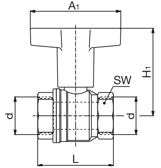 Двухсекционный корпус крана выполнен из никелированной латуни, шар - из хромированной латуни. Шаровое уплотнение изготовлено из тефлона (PTFE), уплотнительные кольца - из фторкаучука ("Витона").