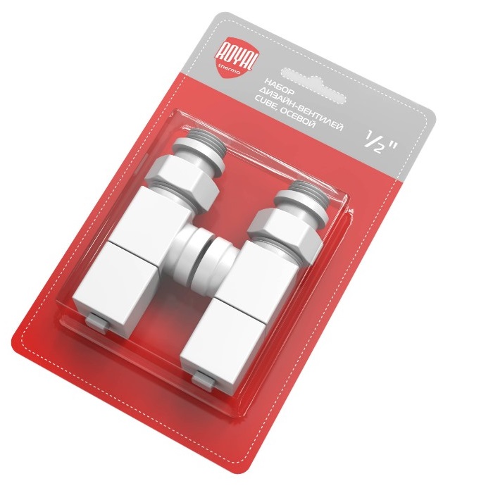 Набор дизайн-вентилей Royal Thermo CUBE, осевой (белый) 1/2