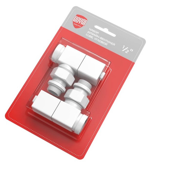 Набор дизайн-вентилей Royal Thermo CUBE, угловой (белый) 1/2