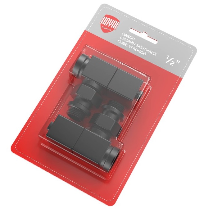 Набор дизайн-вентилей Royal Thermo CUBE, угловой (черный) 1/2