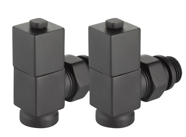 Набор дизайн-вентилей Royal Thermo CUBE, угловой (черный) 1/2" (RTE 56.0009)