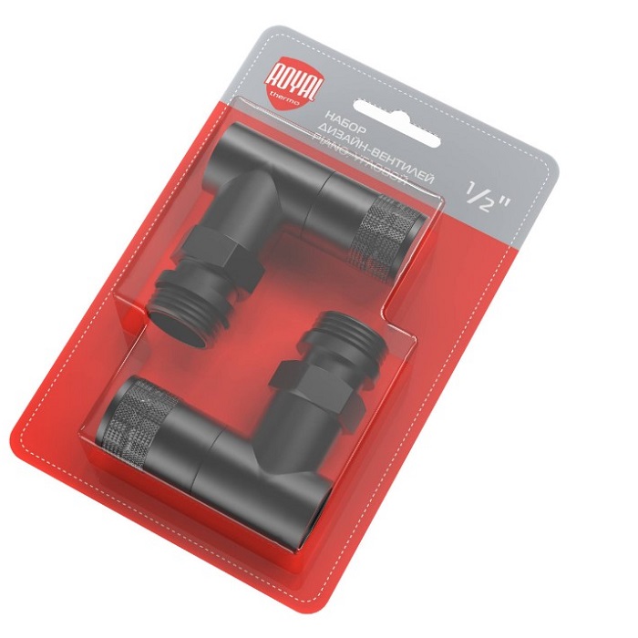 Набор дизайн-вентилей Royal Thermo PIANO, угловой (черный) 1/2" (RTE 56.0013)